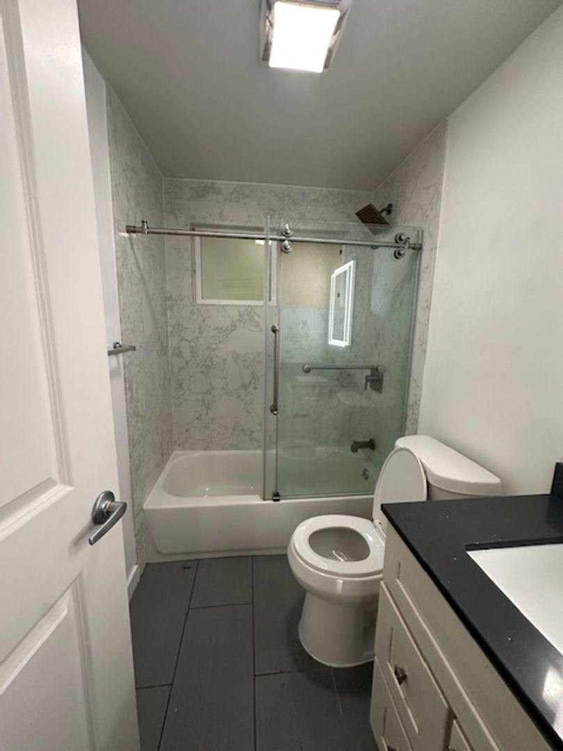 Nicely remodeled 1 bedroom and 1 bathroom unit. New luxury vinyl floors, new kitchen cabinetry and quartz counter tops with fashionable waterfall finishes, stainless steel appliances, bypass water heater, new mini split air conditioning and heater. Updated bathroom with new vanity, shower over tub and modern touches. New doors and hardware makes you feel as if you stepped into a model unit. Come and see it, make it your new home.
